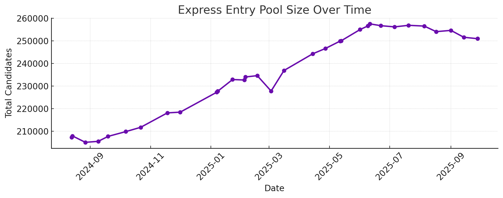 As of September 28, 2025, there are 250,993 profiles in the Express Entry pool.