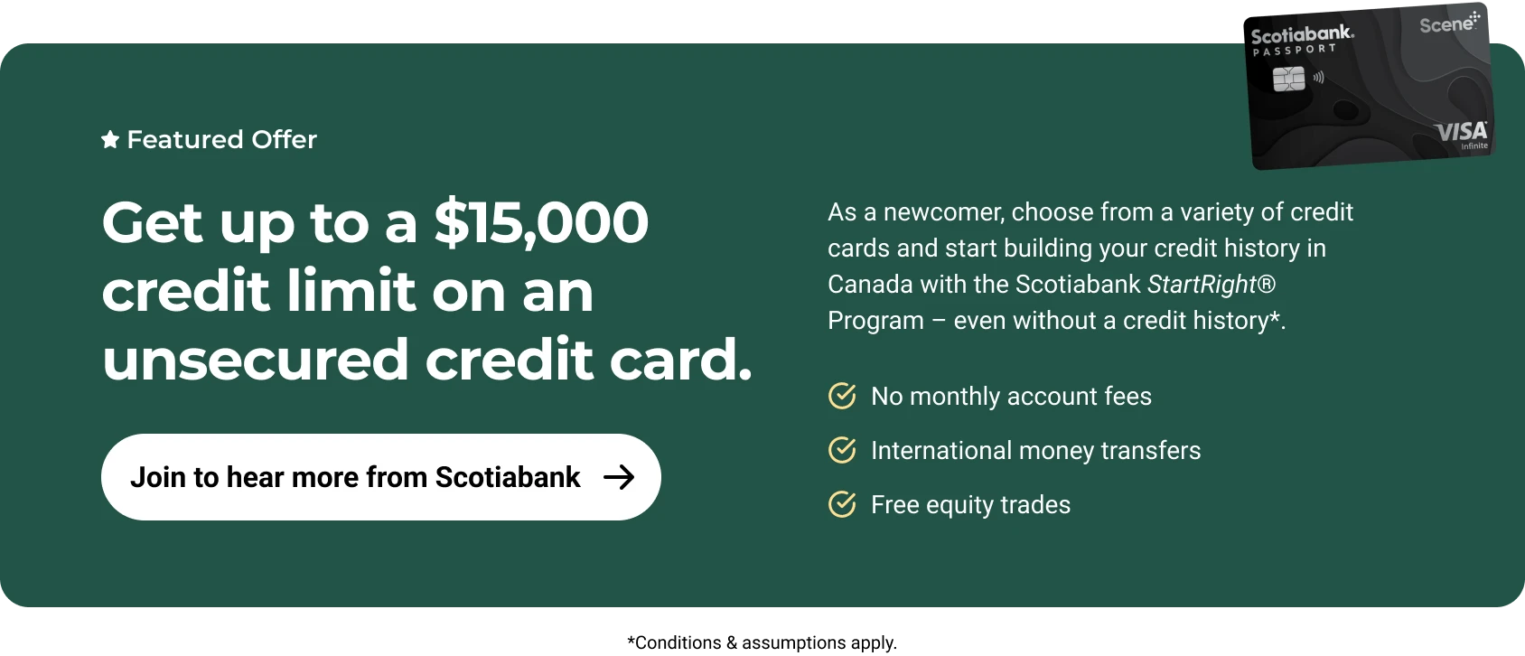 Moving to Canada? Newcomers get up to a $15,000* credit and no monthly account fee** with StartRight™.*Subject to credit approval **Conditions apply