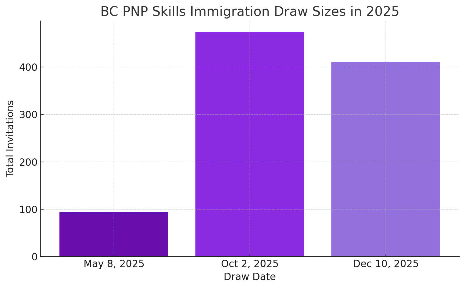 On October 2, 2025, BC invited 474 candidates through the Skills immigration stream.