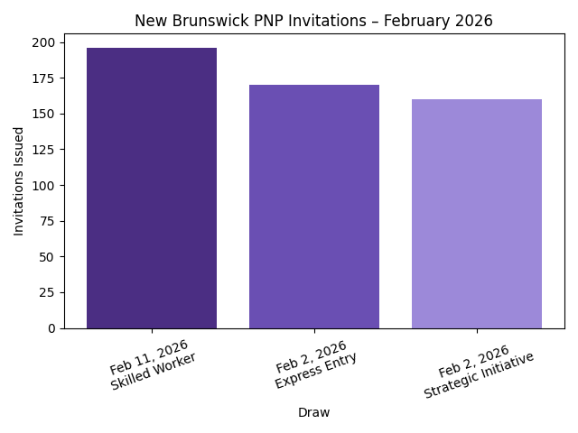The February 11, 2026 draw marked a new round of invitations under New Brunswick’s Skilled Worker Stream. This round followed two separate draws held on February 2, 2026 under different immigration streams.
